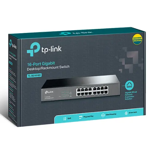 16 Gigabit Ethernet Ports: Provides sixteen 10/100/1000 Mbps RJ45 ports for high-speed network connectivity. All ports support Auto-Negotiation and Auto MDI/MDIX, simplifying network setup by eliminating the need for crossover cables.