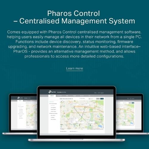 - Centralized Management (Pharos Control): Comes with TP-Link's Pharos Control software, a free centralized management application that allows users to easily manage all Pharos devices in their network from a single PC, simplifying configuration, monitoring, and maintenance.