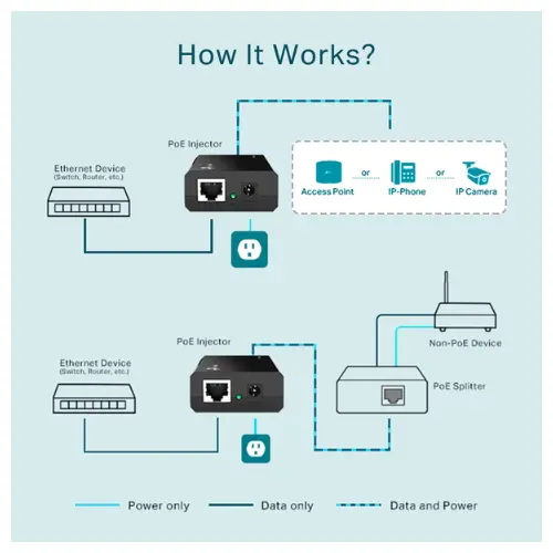 Cost-Effective Solution: Provides a cost-effective solution for deploying PoE devices without requiring an expensive PoE-enabled switch, making it an ideal choice for expanding existing networks with PoE capabilities.