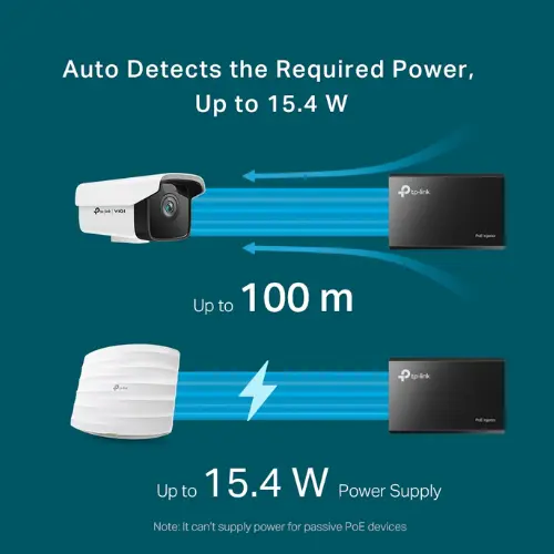 Automatic Power Detection: Intelligently detects the required power output for the connected PoE device, providing up to 15.4 W (watts) of power. This ensures safe and efficient power delivery without over or under-powering the device.