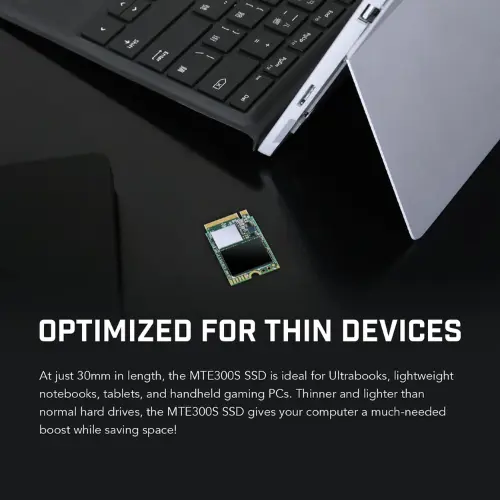 Ultra-Compact M.2 2230 Form Factor: At just 30mm in length, the MTE300S is designed to fit into smaller M.2 slots, perfect for devices where space is at a premium. Its miniature size makes it an excellent choice for specific laptops, tablets, and handheld gaming consoles.